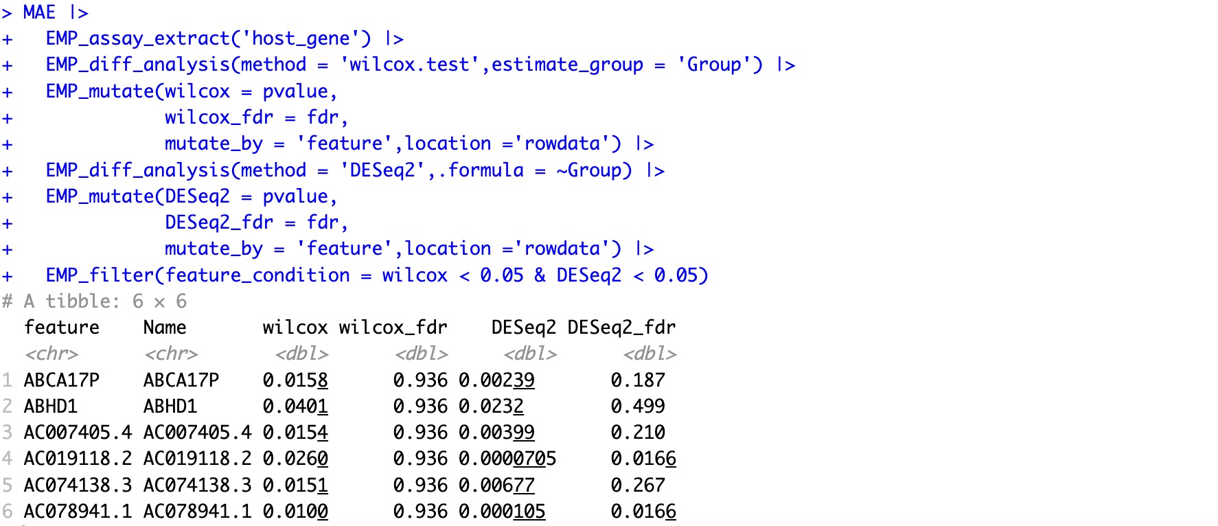 EMP_filter(feature_condition = wilcox < 0.05 & DESeq2 < 0.05)